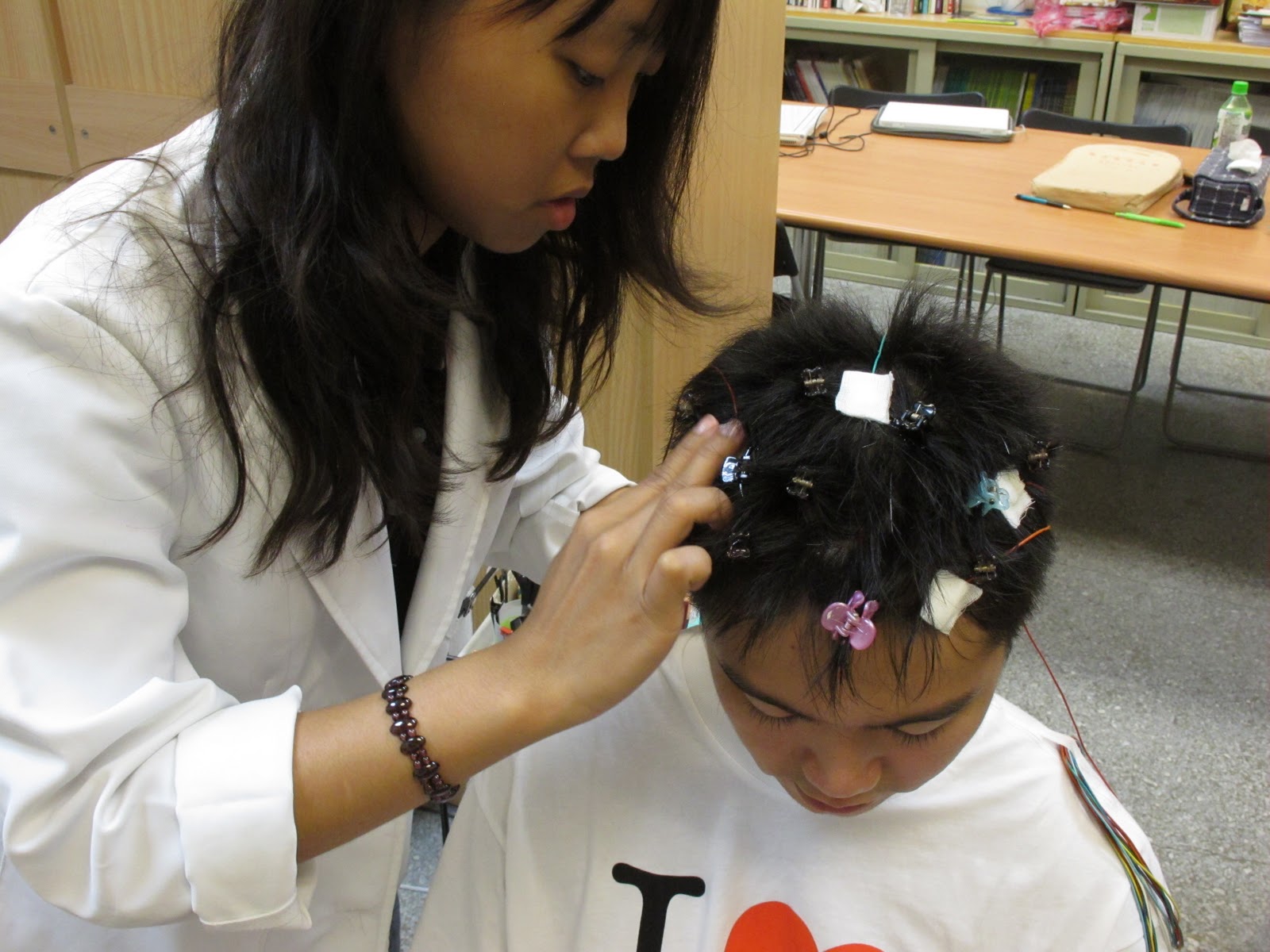 測量腦波的方式,是在頭上的相對位置連接上電極線,再經由儀器接收並放大腦神經活動的電位變化。