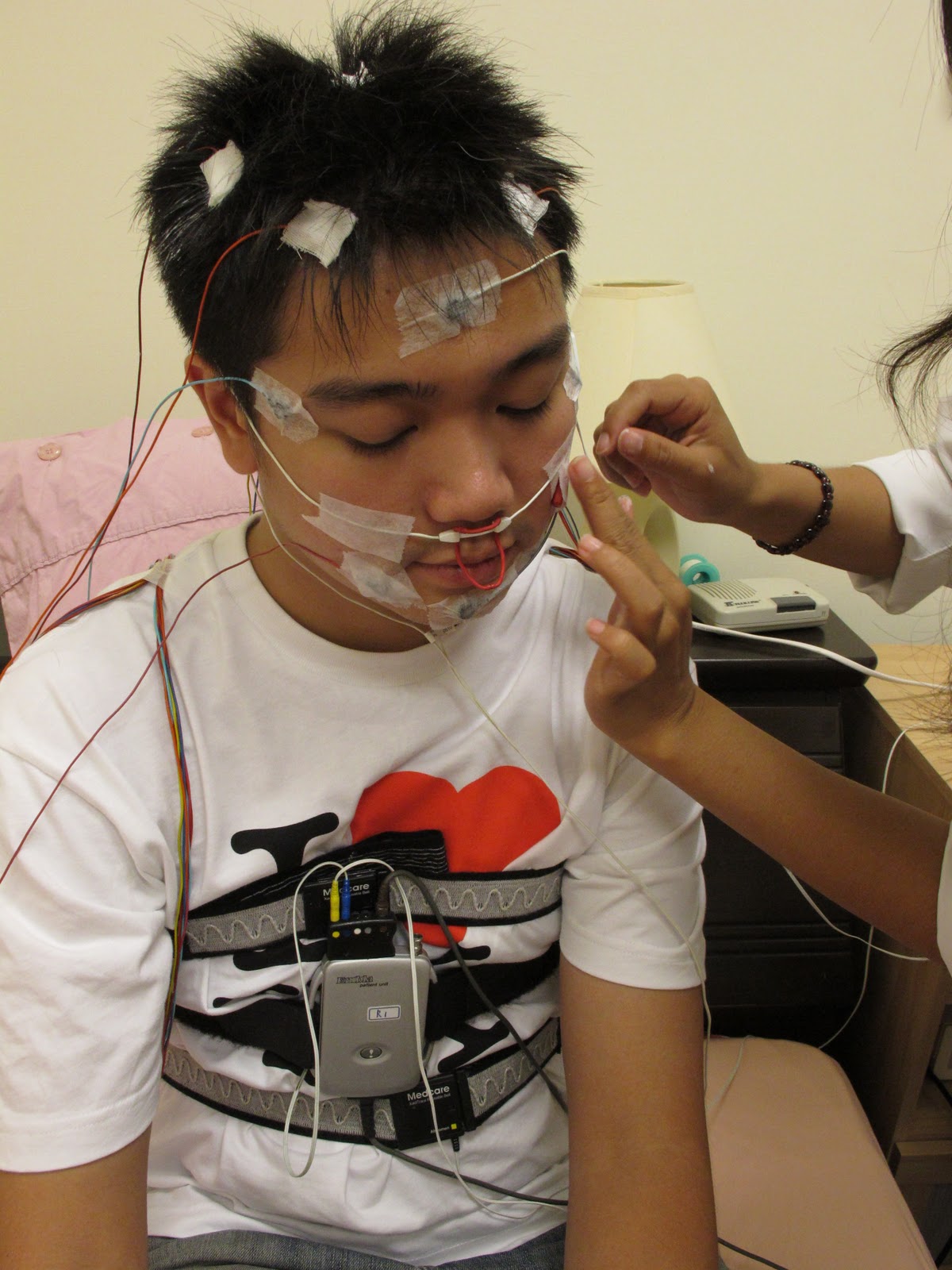 睡眠檢查說穿了,就是要紀錄我們睡著之後各項生理訊號的變化情形(包含腦波、肌肉電位、心電圖、呼吸氣流、呼吸動作、血氧濃度、鼾聲、睡姿體位等等)。然後藉由分析這些數據,評估一個人的睡眠品質、或是否有生理上的疾病(如睡眠呼吸中止),作為治療的依據。
